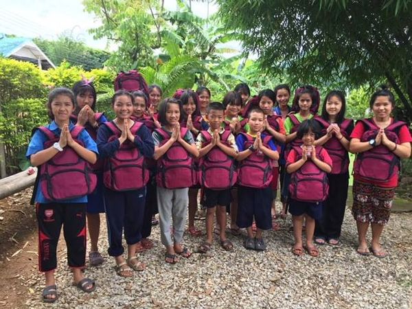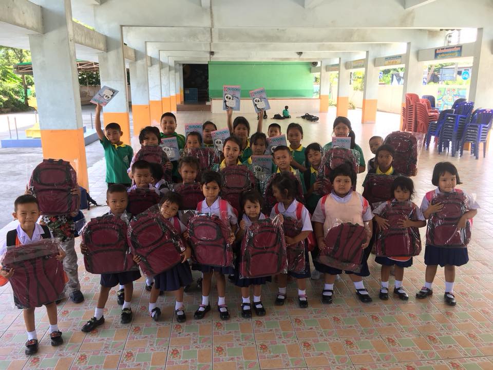 通学用のカバンと計算帳を寄付しました。